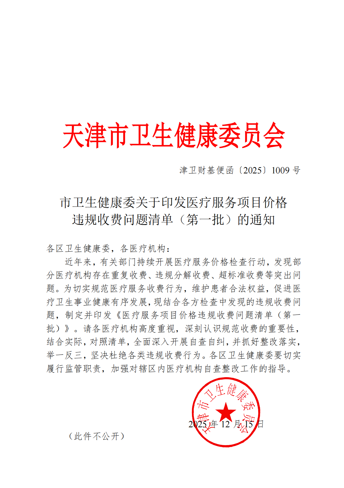 市卫生健康委关于印发医疗服务项目价格违规收费问题清单(第一批)的通知