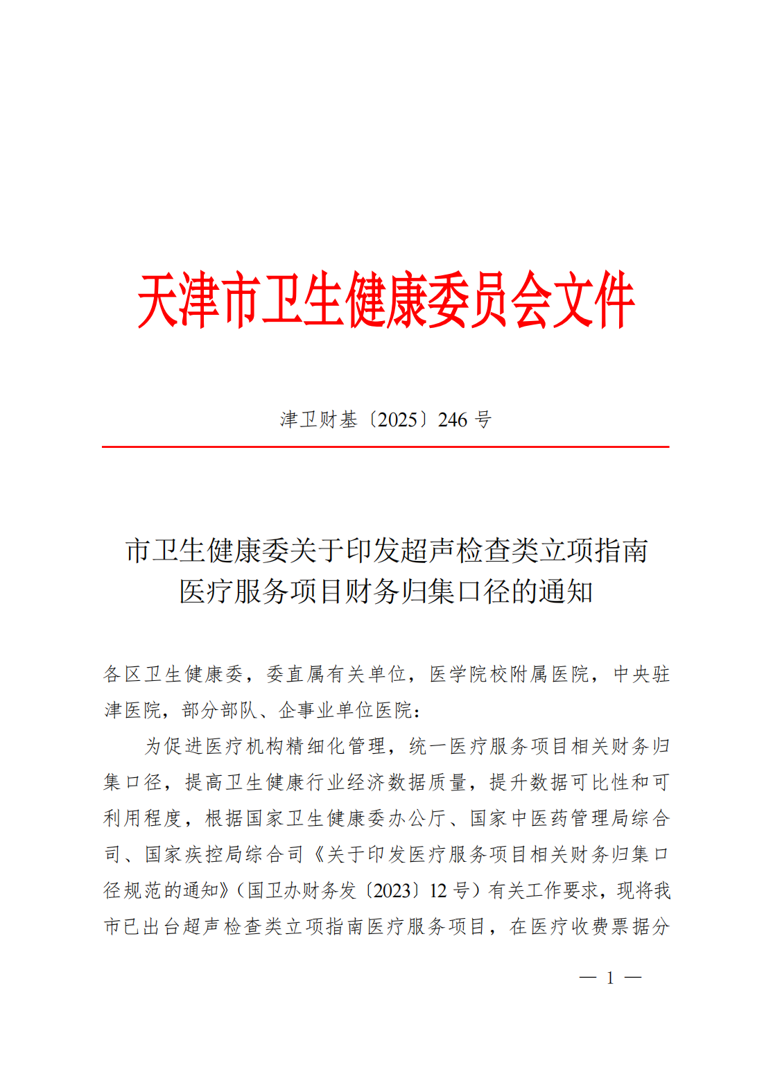 关于印发超声检查类立项指南医疗服务项目财务归集口径的通知