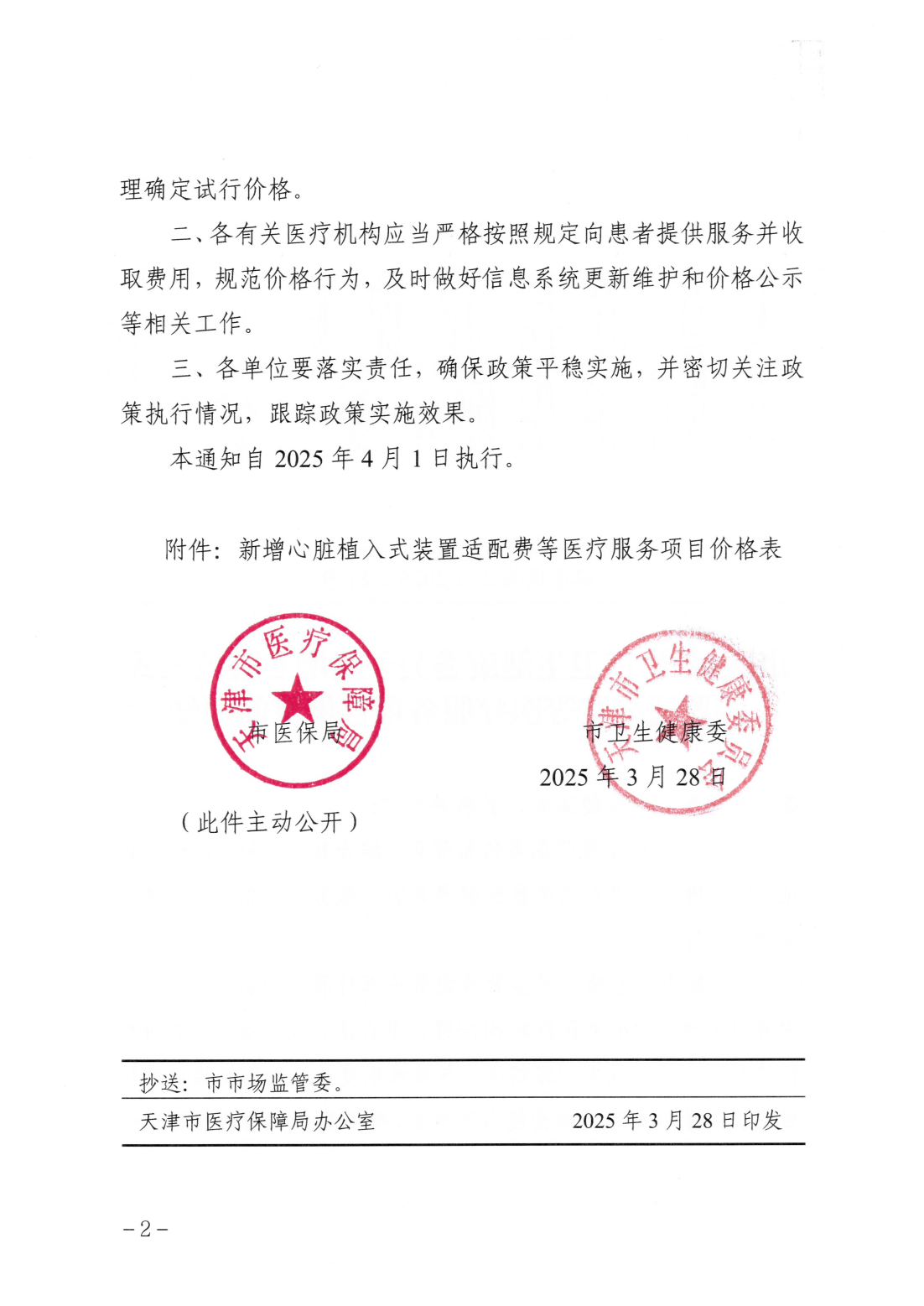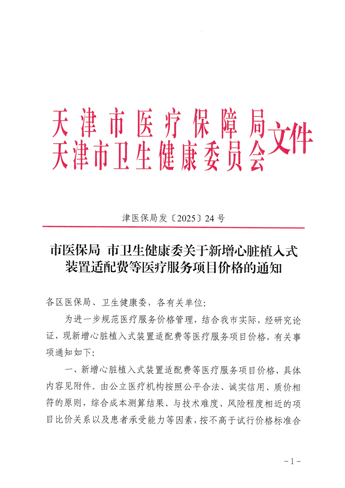 关于新增心脏植入式装置适配费等医疗服务项目价格的通知
