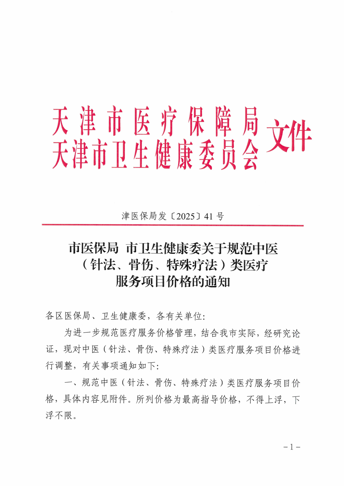 关于规范中医(针法、骨伤、特殊疗法)类医疗服务项目价格的通知