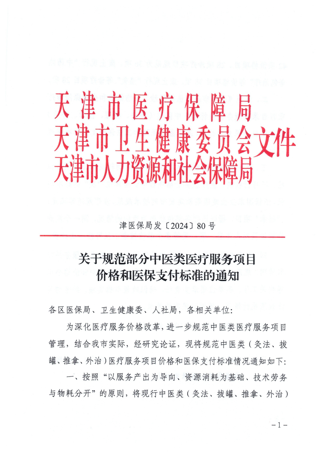 关于规范部分中医类医疗服务项目价格和医保支付标准的通知