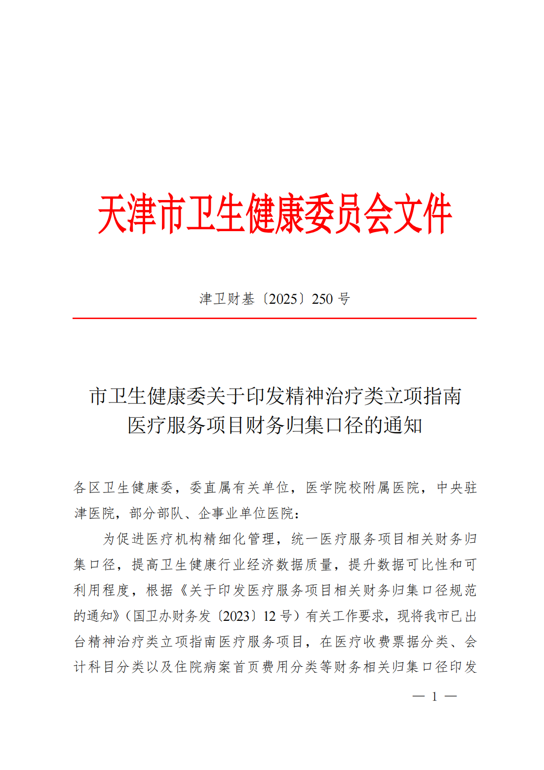 市卫生健康委关于印发精神治疗类立项指南医疗服务项目财务归集口径的通知